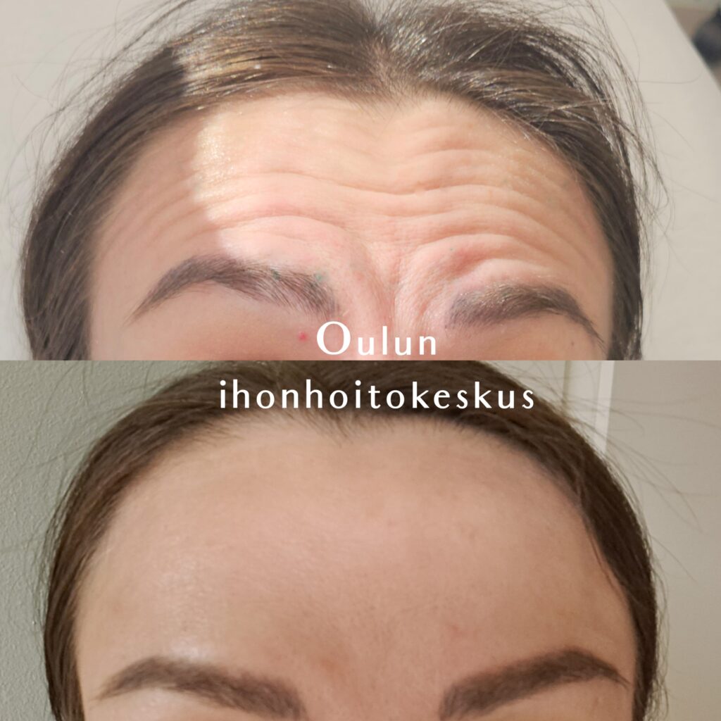 – Yleisin hoidettava kohde botuliinin avulla on otsan poikittaiset juonteet, jotka johtuvat kulmien kohotuksesta. On yksilöllistä minkä ikäisenä juonteet ilmaantuvat niin, että ne alkavat häiritä. Otsan hoidon yhteydessä hoidamme aina myös kulmien välisen alueen, jotta lopputuloksesta tulee esteettisesti kaunis. Otsan hoitoon liittyy usein väärinkäsityksiä ja huonoja kokemuksia. Tämän vuoksi on tärkeää arvioida botuliinin annostus aina yksilökohtaisesti ammattilaisen toimesta.